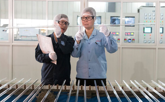 我們使用的是冷頂式全電熔維洛法生產(chǎn)5.0中性硼硅玻璃管,獲得了國家發(fā)明專利(專利號(hào):ZL200710187477.5,專利證書號(hào):745115),產(chǎn)品被評為2014年國家級(jí)重點(diǎn)新產(chǎn)品,并成為國家“十二五規(guī)劃”戰(zhàn)略性新興產(chǎn)業(yè)的重點(diǎn)扶持項(xiàng)目。