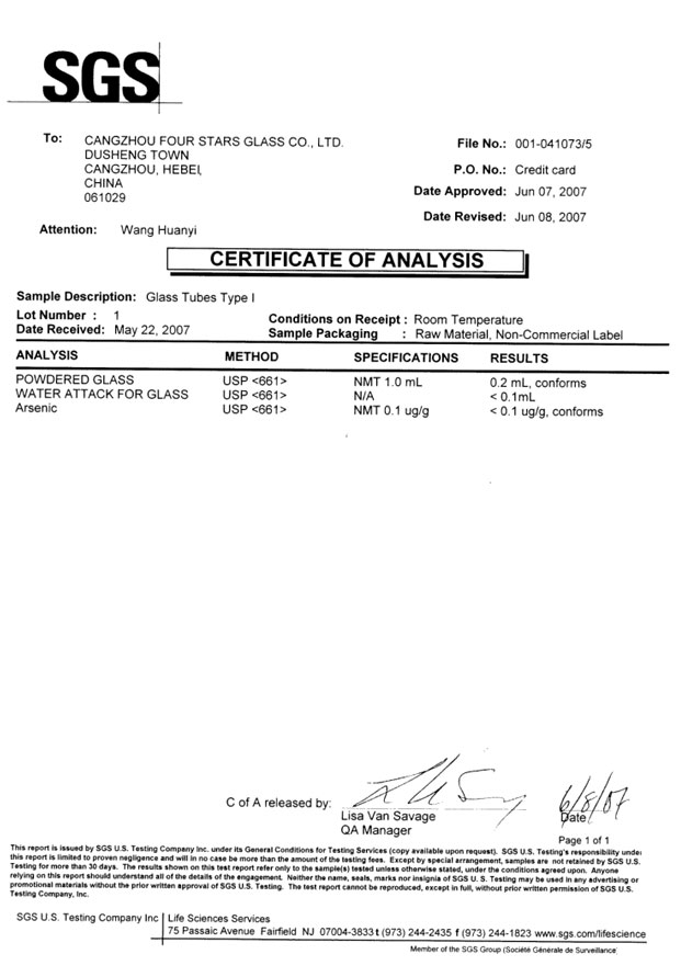 ISO國際標(biāo)準(zhǔn),玻璃管顆粒法耐水I級(jí)為耗酸量小于1ML,國際同行業(yè)的數(shù)值是0.35ML,而我們是0.2ML(數(shù)值越小質(zhì)量越好),此項(xiàng)技術(shù)已經(jīng)獲得了美國權(quán)威檢測機(jī)構(gòu)SGS的檢測證書,此產(chǎn)品已經(jīng)達(dá)到國際先進(jìn)水平。
